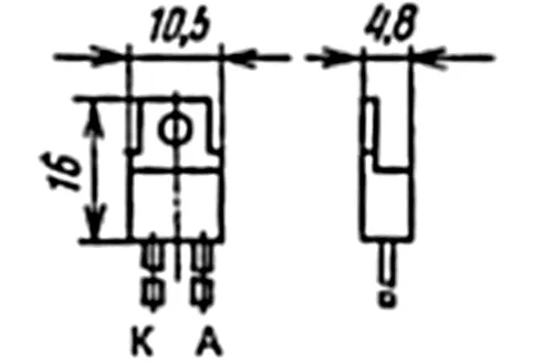 Тип диода и схема соединения электродов с выводами приводятся на корпусе.