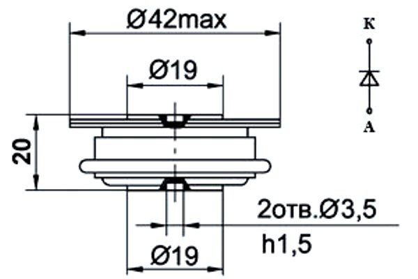 Предназначен для работы в цепях статических преобразователей электроэнергии постоянного и переменного токов на частотах до 2 кГц.