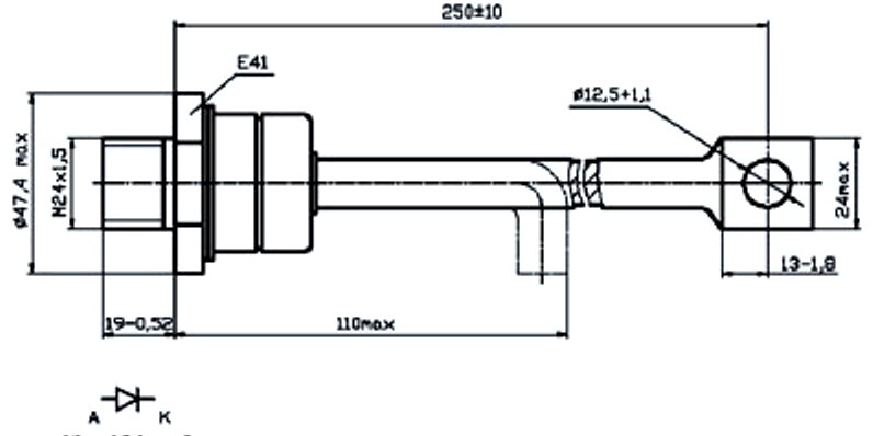 Средний прямой ток - 250 А