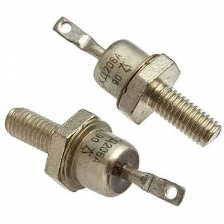 КД206АТ диод кремниевый, мезадиффузионный, лавинный. Предназначен для преобразования переменного напряжения частотой до 20 кГц.