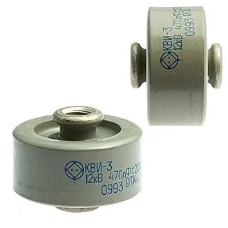 КВИ-3 12кВ 470пф-20% конденсатор высоковольтный керамический предназначен для работы в качестве встроенных элементов внутреннего монтажа аппаратуры в импульсных режимах.