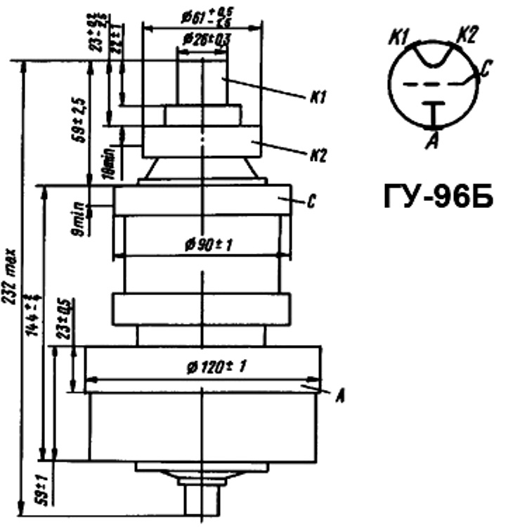 ГУ-96Б генераторный пентод относится к разделу электровакуумных приборов и ламп различного назначения. По конструкции генераторный пентод состоит из вакуумно-герметичной, жесткой оболочки, внутри которой отсутствует кислород.