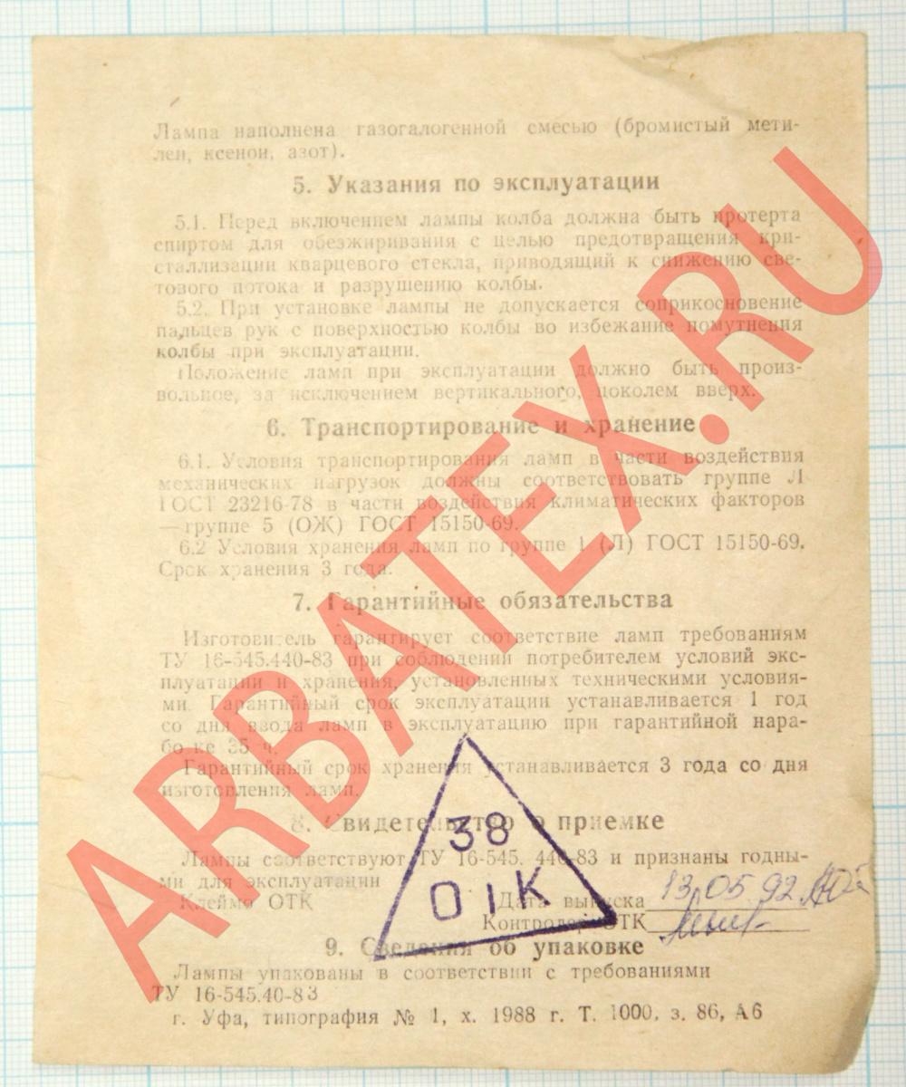 Диаметр колбы : 9,5 мм.