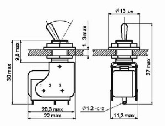МТ3В тумблер применяется для коммутации электрических цепей постоянного и переменного тока в радиоэлектронной аппаратуре. Тип механизма переключения тумблера – рычажный. Монтаж выводов – под пайку. Степень защиты – IP40.