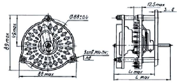 ПЩ-12П4Н2 переключатель щеточный применяется для коммутации электрических  цепей постоянного и переменного тока в радиоэлектронной аппаратуре. Климатическое исполнение В, УХЛ.
