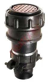 Приборная вилка (розетка) конструктивно состоит из: 1 - корпуса c фланцем, 2,3 - изоляторов, 4 - гнезд (штырей), 5 - пружинного кольца.