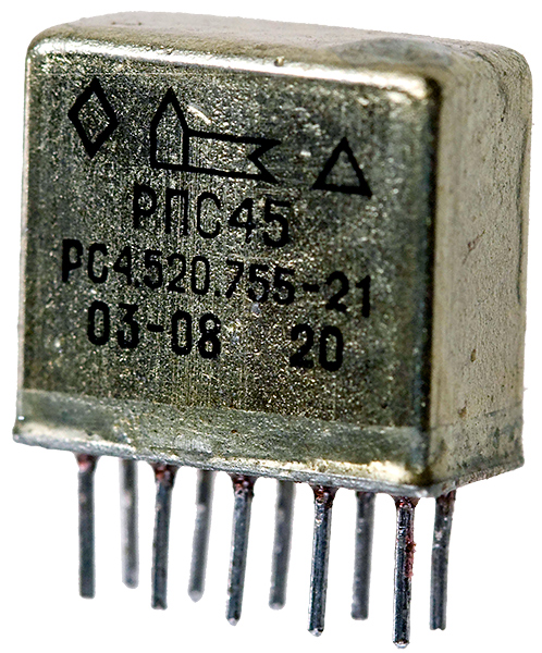 Реле РПС-45 РС4.520.755-21 имеет герметичный корпус с двумя переключающими контактами, служит для замыкания и размыкания различных участков электрических цепей при заданных изменениях электрических или неэлектрических входных величин.  Реле РПС-45 РС4.520.755-21 применяется в различных областях приборостроения, радиоэлектронной промышленности и других сферах.