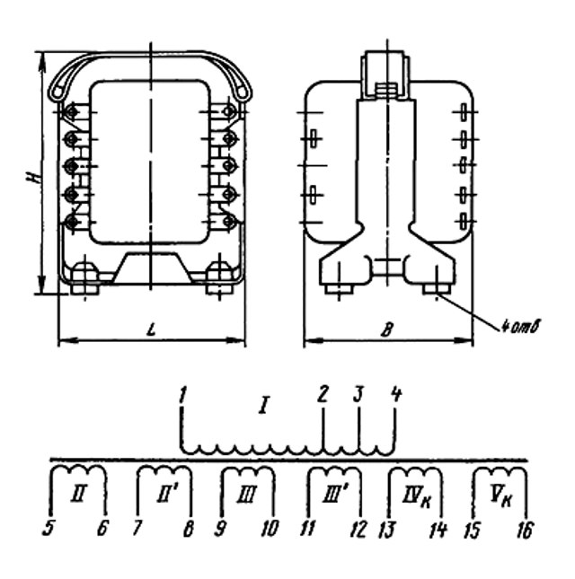 Трансформаторы типа ТПП имеют четыре основные и две компенсационные обмотки, обеспечивающие получение различных токов и напряжений.