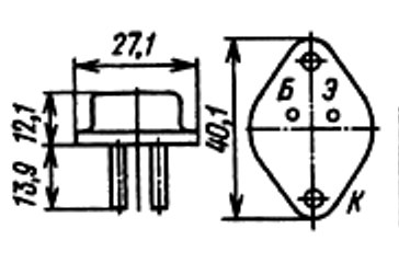 Транзисторы выпускаются в металлическом корпусе с жесткими выводами и стеклянными изоляторами.